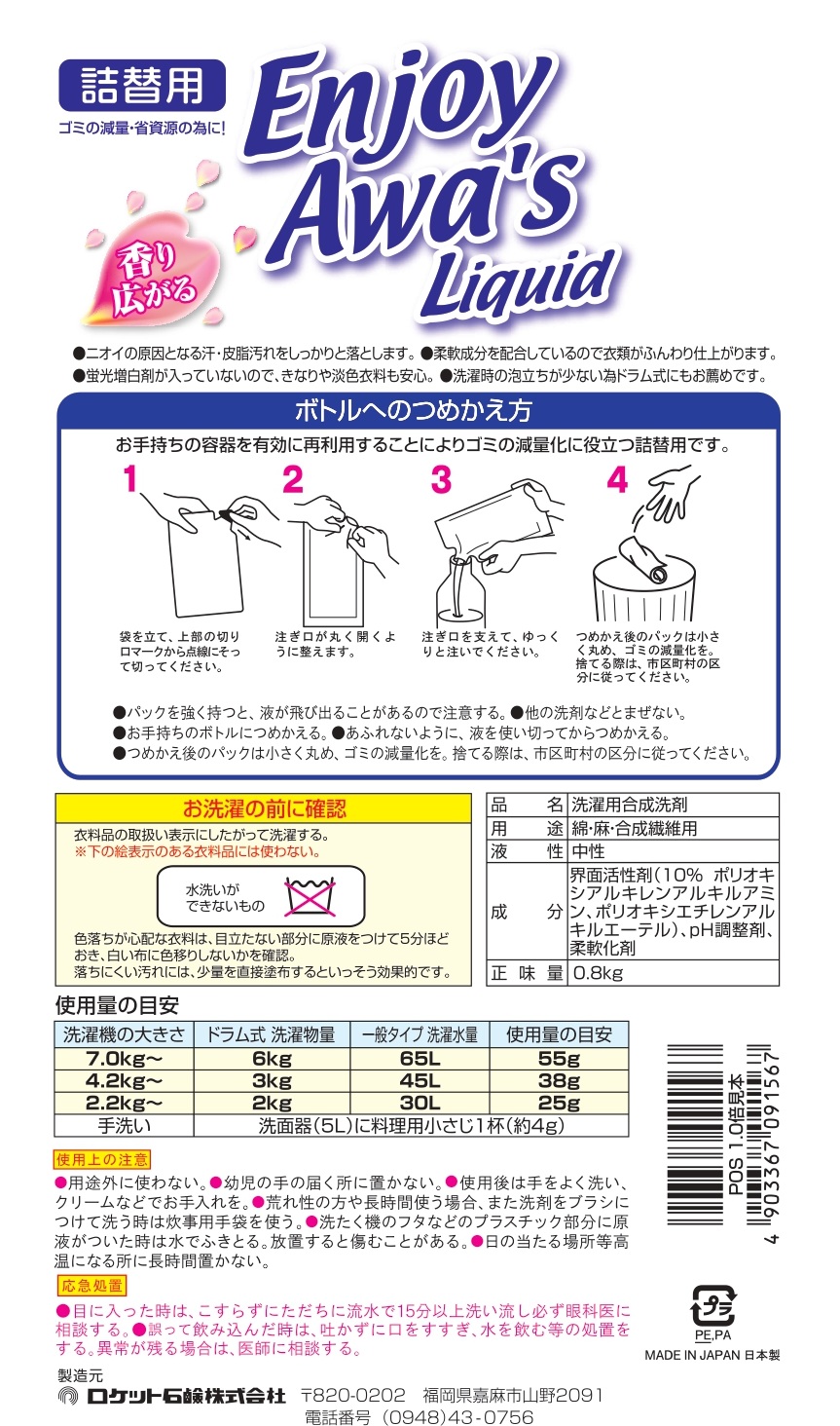 お手持ちの容器を有効に再利用することによりゴミの減量化に役立つ詰め替え用です。