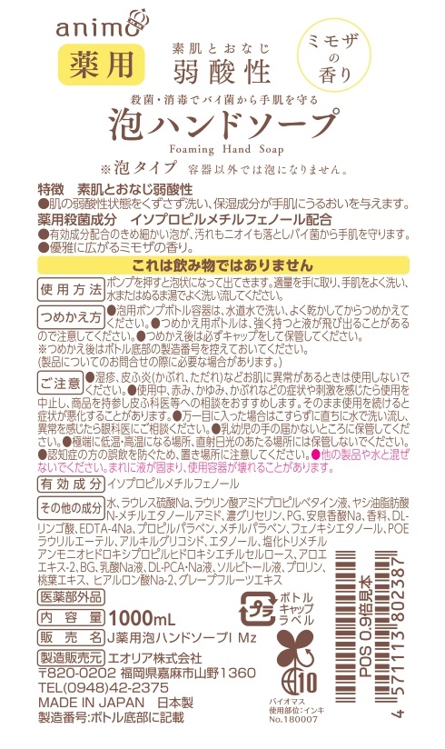 ●有効成分配合のきめ細かい泡が、汚れもニオイも落としバイ菌から手肌を守ります
